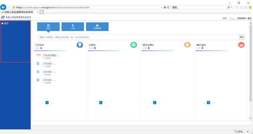 4.进入系统后发现左侧菜单栏只剩下了首页